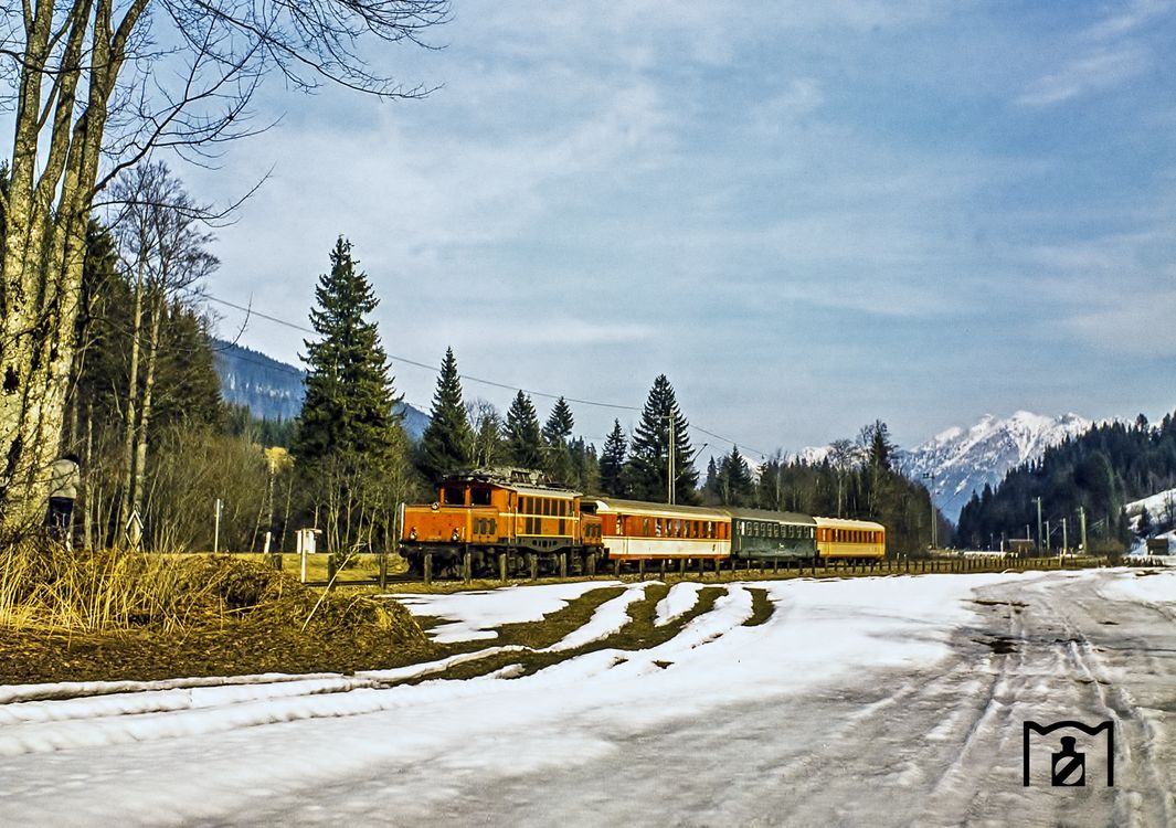 Zum Jahresausklang präsentiere ich einen Sonderzug, der am 31.August 1986 von Landeck nach Jenbach verkehrte. Zuglok war die damals im Bestand von B&B befindliche 52.3879. Scheinbar hatte man damals im Westen Österreichs keine grünen Vierachser zur Verfügung, weil die Garnitur aus zwei Mitteleinstiegswagen in Jaffalackierung bestand.