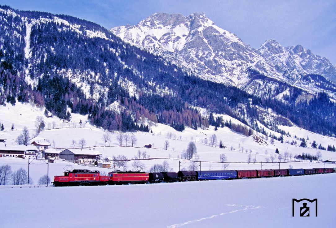 Das Thema "Personenwagen in einem Güterzug eingereiht" (kein GmP) hat mich jetzt ein wenig erfasst und auf der Suche nach einen weiteren solch einem Zug bin ich in der Eisenbahnstiftung fündig geworden unter dem Suchbegriff "ÖBB 1020.006 bei Hochfilzen" findet man 3 Bilder von einem Güterzug mit eben einem in diesem Falle Liegewagen eingereiht.